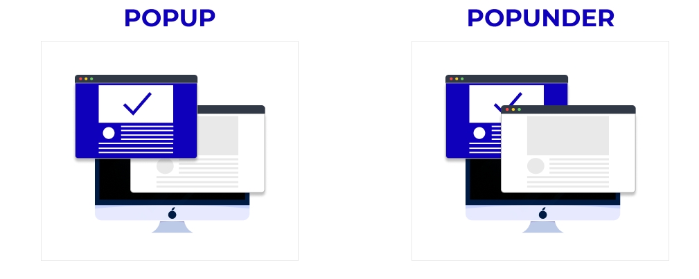 Pop-up advertising opens a separate window or tab on top of the current website, while pop-under advertising opens a separate window or tab beneath the current website. Pop-under ads are often less intrusive and more discreet, as they are not immediately visible to the user.